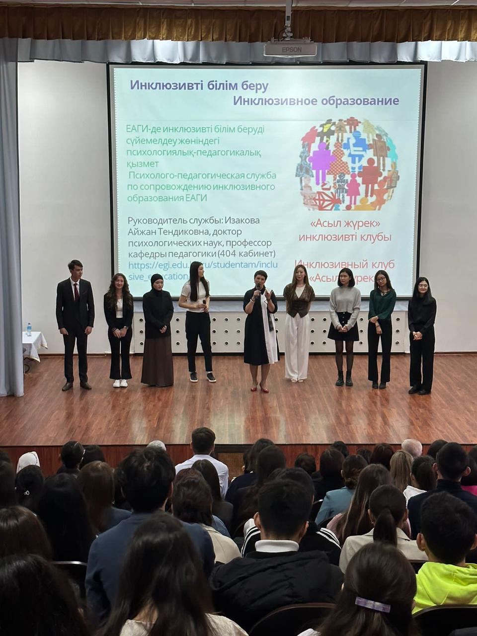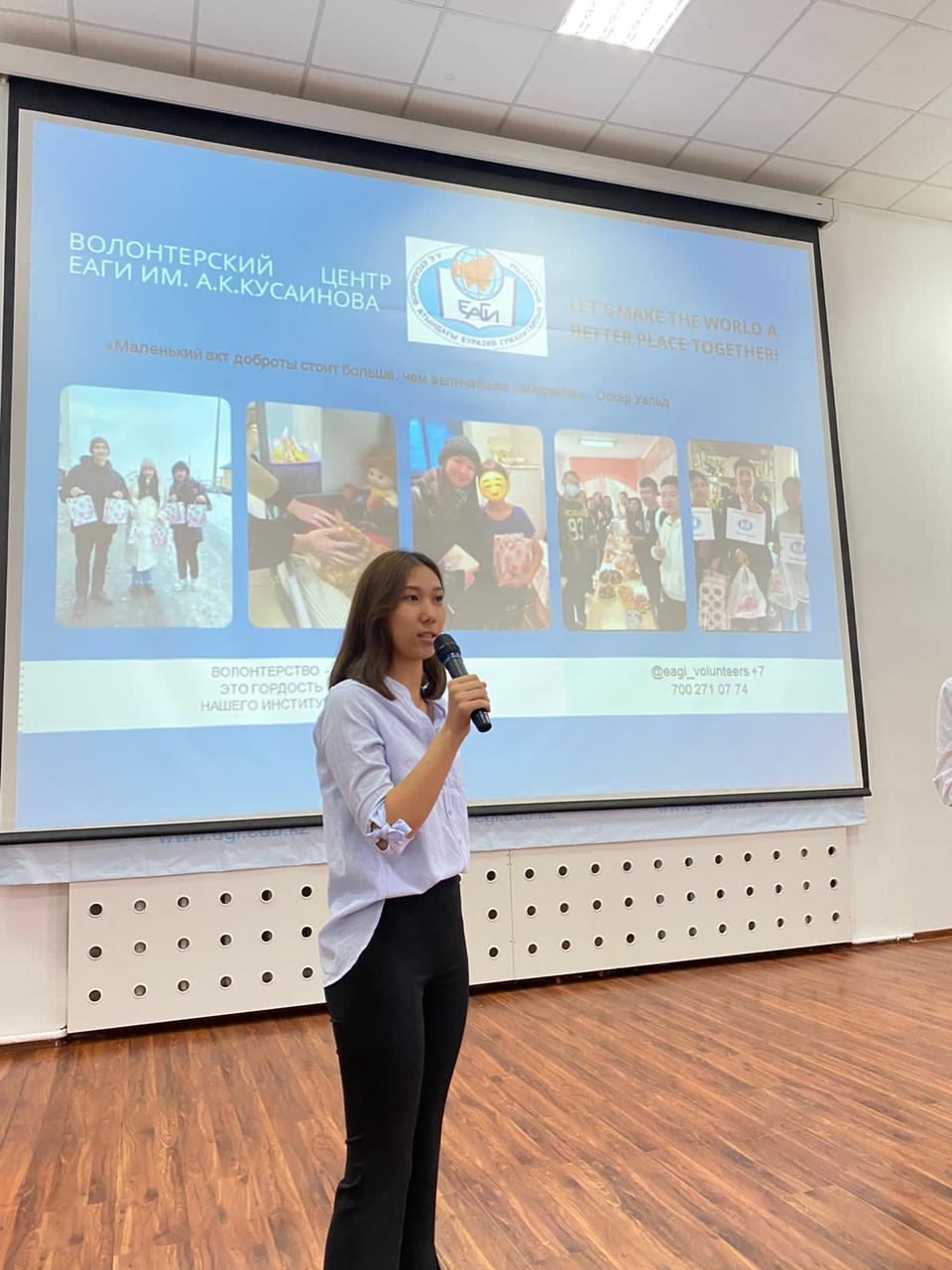 В рамках ориентационной недели перед студентами выступили: проректор по воспитательной работе, к.п.н., профессор Я.Н. Оспанова, которая презентовала главные направления воспитательной работы, декан института, к.п.н., доцент Т.Н. Кемайкина; руководитель отдела регистрации К.Т. Байжуманова; руководитель Центра дистанционных образовательных технологий А.С. Темиргалиева; руководитель психологической службы ЕАГИ, доцент Болатбекова Н. Ж., руководитель психолого-педагогической службы по сопровождению инклюзивного образования ЕАГИ, магистр А.Т. Аязбаева; директор библиотеки С.Б. Хамзина; руководитель волонтерского центра, магистр Темиргалиева Г. К., руководитель пресс-центра Калиаскарова Т. Г.; председатель КДМ А. Абильдина, лидеры студенческого самоуправления. Координатор по академической мобильности и международным связям, магистр А.Т. Сандыбаева презентовала программы обучения в вузах республики, ближнего и дальнего зарубежья. В ходе встречи студенты задавали вопросы и обменивались мнениями.