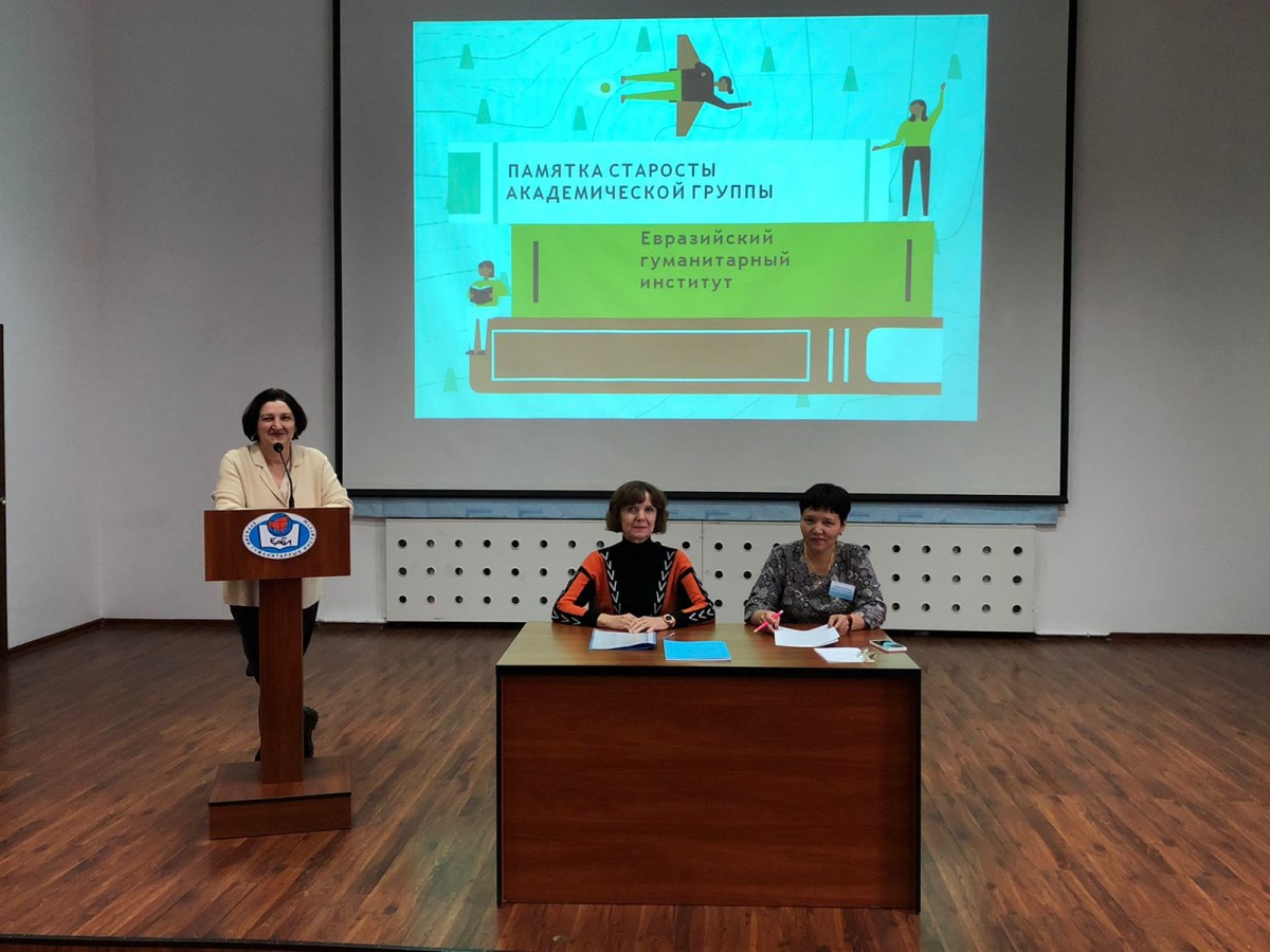 13 сентября с.г. прошло заседание старостата с участием декана института Кемайкиной Т.Н., заместителя декана Кохович С.Д., начальника отдела регистрации Байжумановой К.Т., старост 1 – 4 курсов нашего, Евразийского гуманитарного института. Среди вопросов, которые обсудили лидеры студенческого самоуправления академических групп, были следующие: права и обязанности старосты, приемы и формы работы по сплочению студенческого коллектива, методы и способы формирования навыков здорового образа жизни, правила и принципы безопасного поведения в стенах института и др.