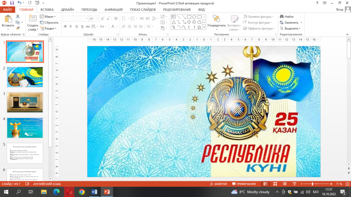 19 октября 2022 года кураторы кафедры экономических и математических дисциплин Садыкова М.А. и Дәулетханова Ж.Д. в рамках празднования Дня Республики Казахстан провели кураторский час «Қазақстан – туған елім, ұлы өлкем» для студентов 2 – 3 курсов образовательной программы «Финансы» (академические группы Қ-21-01 и Ф-20-01) с целью воспитания патриотизма, обогащения знаний об основных этапах становления Республики Казахстан, развития у обучающихся интереса к истории своей Родины. Прослушав доклады и просмотрев презентацию, участники мероприятия ответили на вопросы викторины по теме кураторского часа.