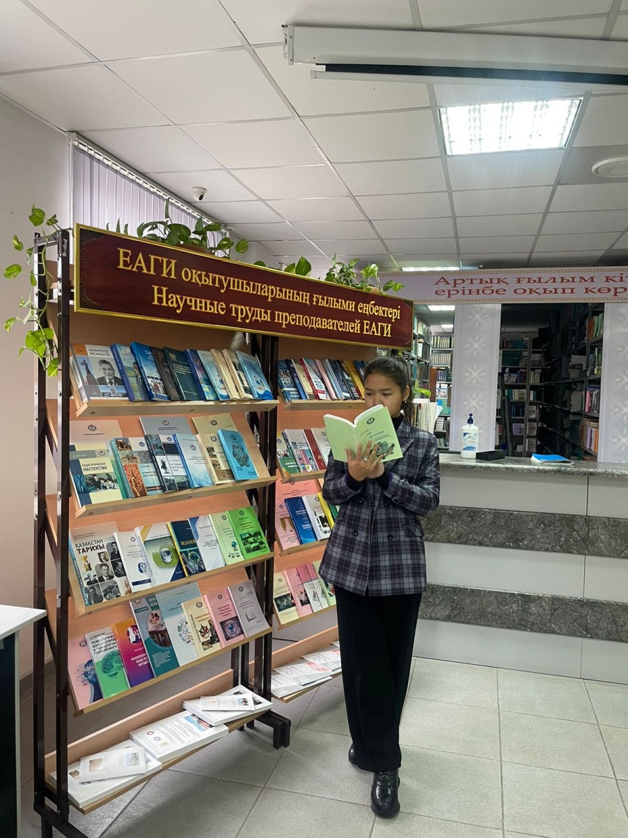 В течение октября 2022 года, в рамках празднования Дня Республики Казахстан, в читальных залах библиотеки Евразийского гуманитарного института с целью повышения интереса к изучению литературного наследия Казахстана проходят выставки: книжно-иллюстрированная выставка и выставка научных достижений и трудов профессорско-преподавательского состава. Посещая выставки, ППС и студенты ЕАГИ с интересом знакомятся с книжными новинками, получая при этом информационные знания и приобретая навыки культуры чтения.