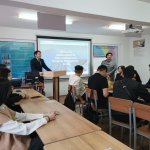 В рамках празднования Дня национальной валюты и проведения Недели кафедры экономических и математических дисциплин 15 ноября 2022 года для студентов образовательной программы «Финансы» была проведена гостевая лекция на тему: «Управление финансовыми рисками организаций в условиях современного финансово-экономического кризиса». Перед студентами выступил заместитель финансового директора ТОО «Property Management Group» Акпаев А. Е.