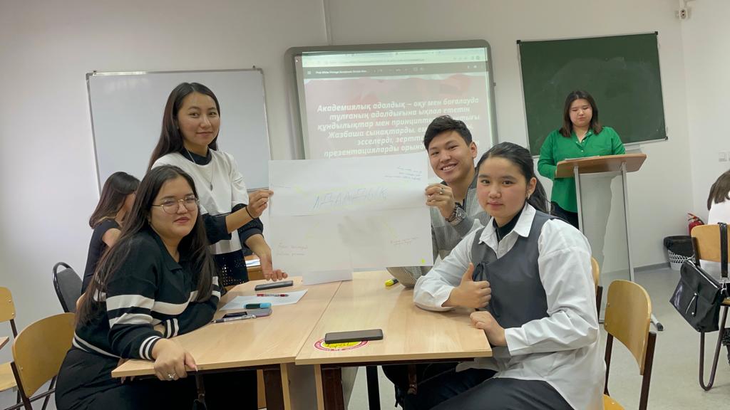 24 ноября 2022 года старший преподаватель кафедры казахской и русской фиологии Евразийского гуманитарного института, м.ф.н. Нурбанова А.К. провела кураторский час со студентами группы ҚТ-22-01 образовательной программы «Казахский язык и литература» на тему «Академическая честность». Целью кураторского часа было формирование у молодежи таких ценностей, как нетерпимость к коррупции, честность, справедливость, добропорядочность и патриотизм.