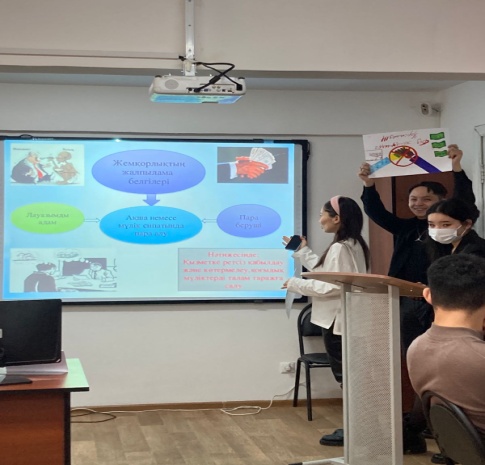 30 ноября текущего года в рамках международного дня борьбы с коррупцией старший преподаватель кафедры экономических и математических дисциплин, куратор Даулетханова Ж.Д. и старший преподаватель Садыкова М.А. провели кураторский час на тему «Сыбайлас жемқорлық – қоғам дерті» в академических группах Ф-20-01, Қ-21-01.