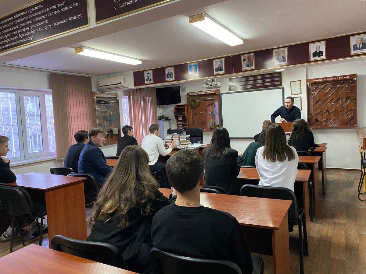 1 февраля 2023 года на платформе криминалистического учебно-лабораторного комплекса старшим преподавателем кафедры юридических дисциплин Абельдиновым А.С. реализована профориентационная работа в формате встречи с выпускниками колледжа ЕАГИ специальности «Правоведение».