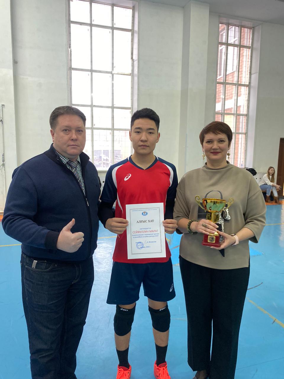 Всем победителям и призерам, а также организаторам  турнира – преподавателю физической культуры Волкову Олегу Александровичу и руководителю фракции спорта и здорового образа жизни Студенческого Парламента, студенту образовательной программы «Юриспруденция» Сейфуллину Марату (академическая группа ЮК-22-01) были вручены грамоты, благодарственные письма ректора Евразийского гуманитарного института им. А.К.Кусаинова Исмаилова А.Д. и ценные призы Управления по противодействию наркопреступности Департамента полиции г. Астаны.