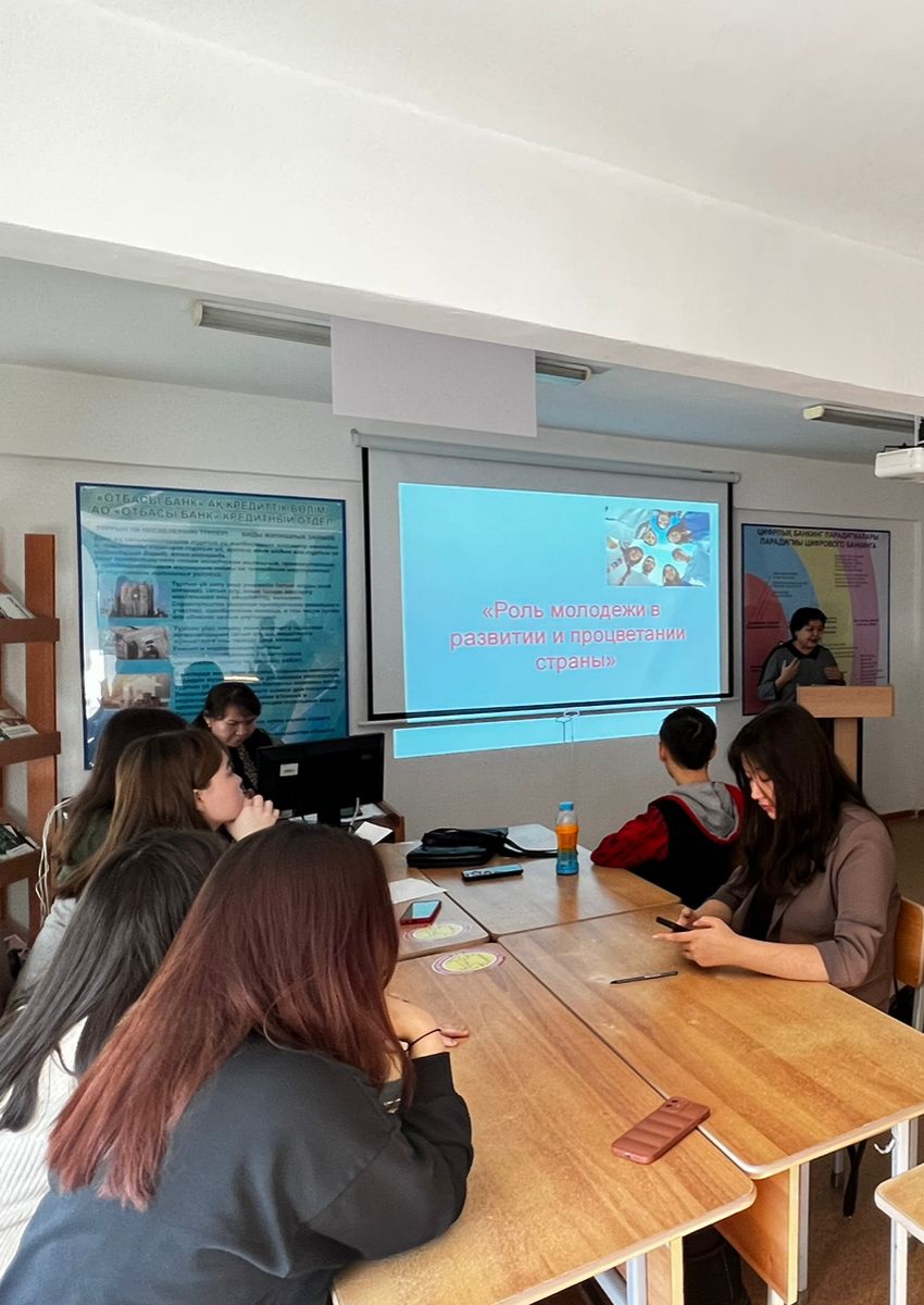 23 февраля 2023 года доцент кафедры экономических и математических  дисциплин Мажитова Б.Б  прочитала  лекцию для студентов  академических групп Ф-22-01 и ФТ-22-01(1 курс, образовательная программа «Финансы») на тему: «Роль молодежи в развитии  и процветании страны » .