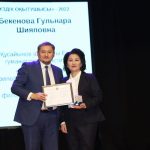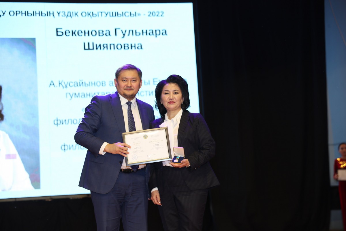 В ходе церемонии была награждена победительница конкурса «Лучший преподаватель вуза 2022 года» – профессор кафедры казахской и русской филологии, к.ф.н. Бекенова Г.Ш.