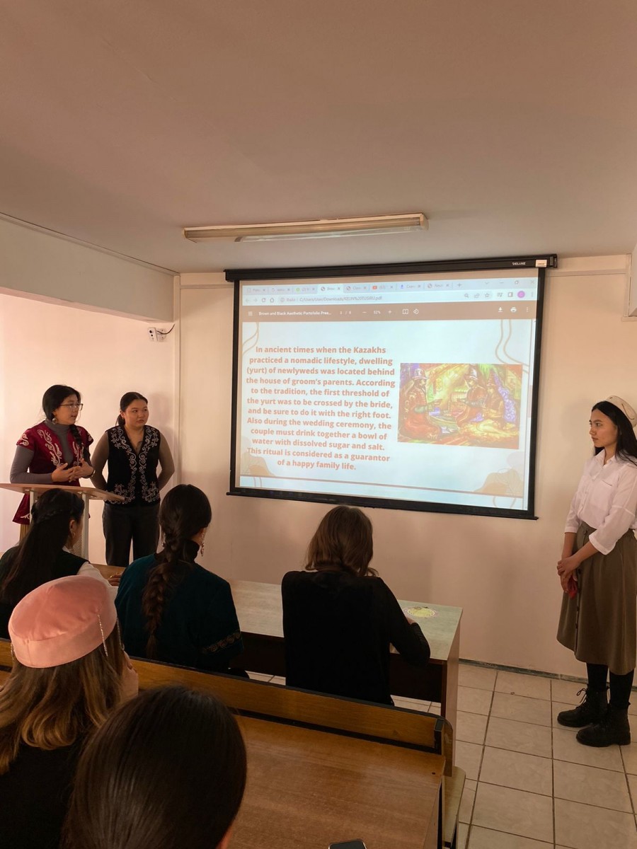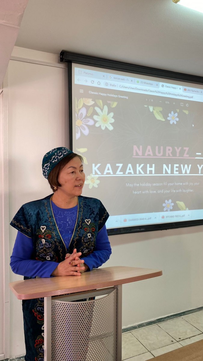 Наурыз – праздник весеннего обновления, торжества любви и дружбы. Он несет в себе самые сильные, светлые чувства, вечные ценности, близкие любому человеку.  15 марта 2023 года, в канун всеми любимого праздника, прошел кураторский час под руководством старших преподавателей  кафедры иностранных языков А.Н. Ергалиевой, М.Г. Садвакасовой, А.М. Сарсеновой.  С теплыми пожеланиями добра и благополучия к участникам мероприятия обратилась заместитель заведующего кафедрой иностранных языков, доцент Г.У.Аренова. Студенты подготовили презентацию о празднике “Наурыз”, душевные песни, зажигательные танцы, театральные постановки и викторины. Традиционная песня «Наурыз» и национальное блюдо  Наурыз коже стали украшением праздника.