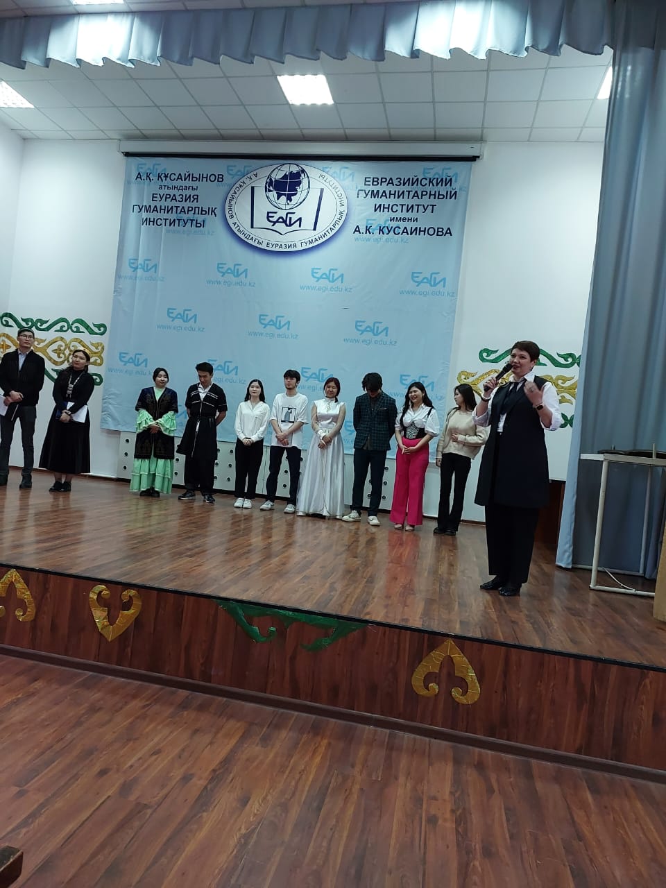Присутствующие в зале аплодисментами встретили музыкальные произведения, исполненные на домбре Досекенулы Б. и Шакировой Д. Никого не оставил равнодушным танец «Вайнахская лезгинка» Бекен Е. Участники концерта показали национальный обряд «ҚызҰзату», предложили зрителям спеть вместе с артистами любимые народные песни. Студенты также приняли участие в состязаниях по национальным играм «Арқантарту»,«Қолкүрес». После мероприятия в Доме студентов был накрыт праздничный дастархан.