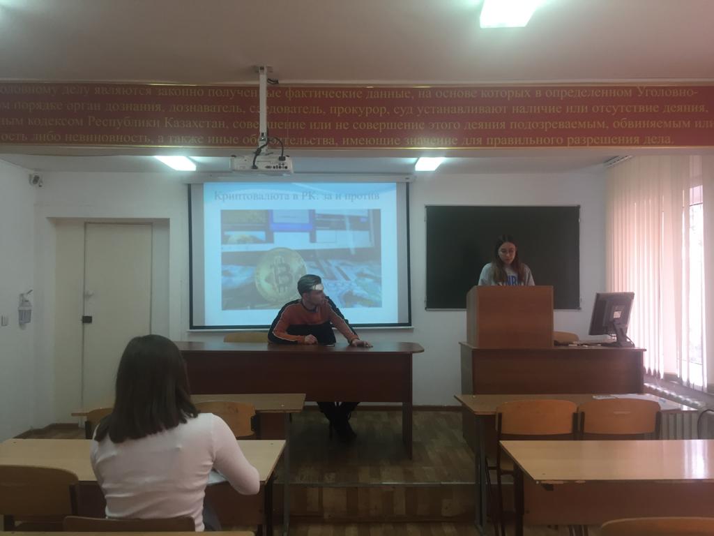 10 мая 2023 года преподаватель кафедры экономических и математических дисциплин к.э.н., доцент А.А. Ахметова провела открытое занятие в академической группе ЮР-22-01 (1 курс, образовательная программа «Юриспруденция») по дисциплине «Основы экономики, предпринимательства и антикоррупционная культура» на тему: «Криптовалюта в Республике Казахстан: плюсы и минусы». Цель занятия: раскрыть сущность криптовалюты, особенности её функционирования в Казахстане. Занятие проходило в форме дебатов. Студенты были подготовлены, активны, задавали вопросы.