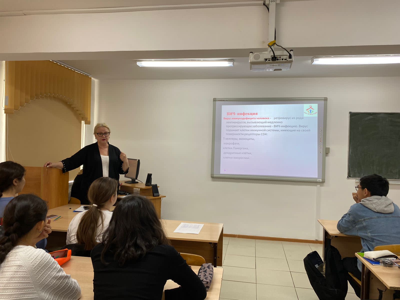 14 сентября 2023 года в стенах Евразийского гуманитарного института им. А.К. Кусаинова прошла встреча студентов с директором ОФ «Шаг в будущее» при Центре по профилактике ВИЧ г. Астана Турымовой А.Т. и врачами отделения профилактики и социально-психологической помощи ГКП на ПХВ «Городская поликлиника №3» акимата города Астана. В ходе встречи речь шла о профилактике ВИЧ-инфекции и наркозависимости, возможных рисках передачи ВИЧ. Уделялось особое внимание формированию у молодёжи приверженности к тестированию на ВИЧ и толерантности к людям, живущим с этим заболеванием. Это образовательное мероприятие – еще один шаг на пути к долгой, счастливой жизни и преодолению стигмы в обществе!
