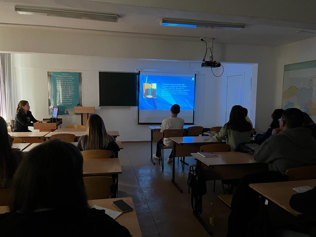 15 сентября 2023 года студенты 2 – 3 курсов образовательной программы «Юриспруденция» (академические группы ЮРТ-22-01, ЮР-21-01) приняли участие в акции «Час добропорядочности». Цель акции: формирование у студенческой молодежи принципов добропорядочности и честности, а также разъяснение государственной антикоррупционной политики. В ходе мероприятия был показан видеоролик про Абая Кунанбаева; кураторы Абельдинов А.С. и Канафина Г.А. обратили внимание студентов на необходимость соблюдения принципов добропорядочности и честности, как в учебной деятельности, так и в повседневной жизни.