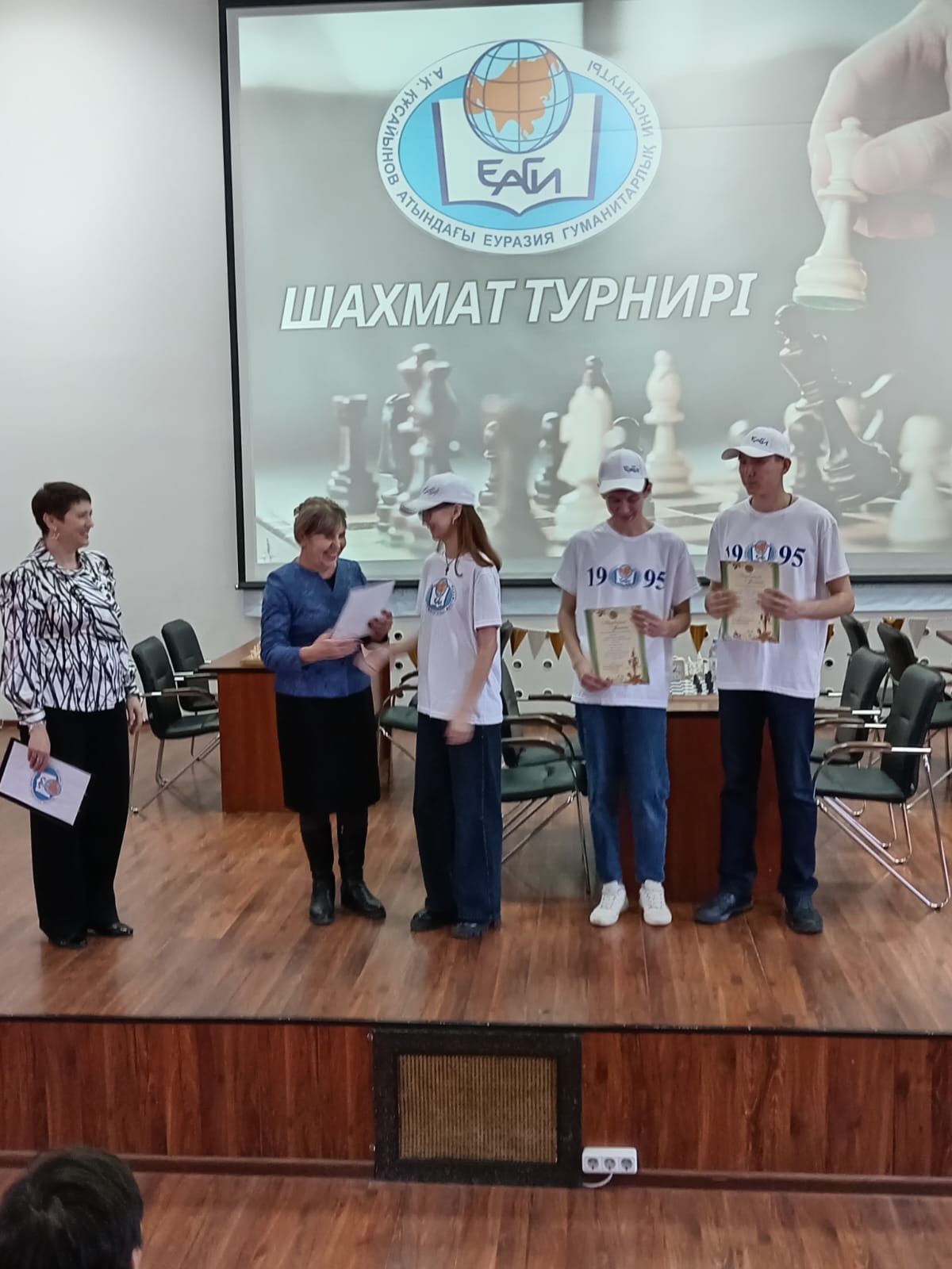 Всем победителям и призерам, а также организаторам турнира –Салимжуарову Гани (образовательная программа «Юриспруденция», академическая группа ЮР-20-01), Рамазан Айдане (образовательная программа «Переводческое дело», академическая группа ПДТ-22-01), Нуркееву Алмазу (образовательная программа «Финансы», академическая группа Ф-21-01) были вручены грамоты и благодарственные письма руководства Городской поликлиники №3 акимата города Астаны.