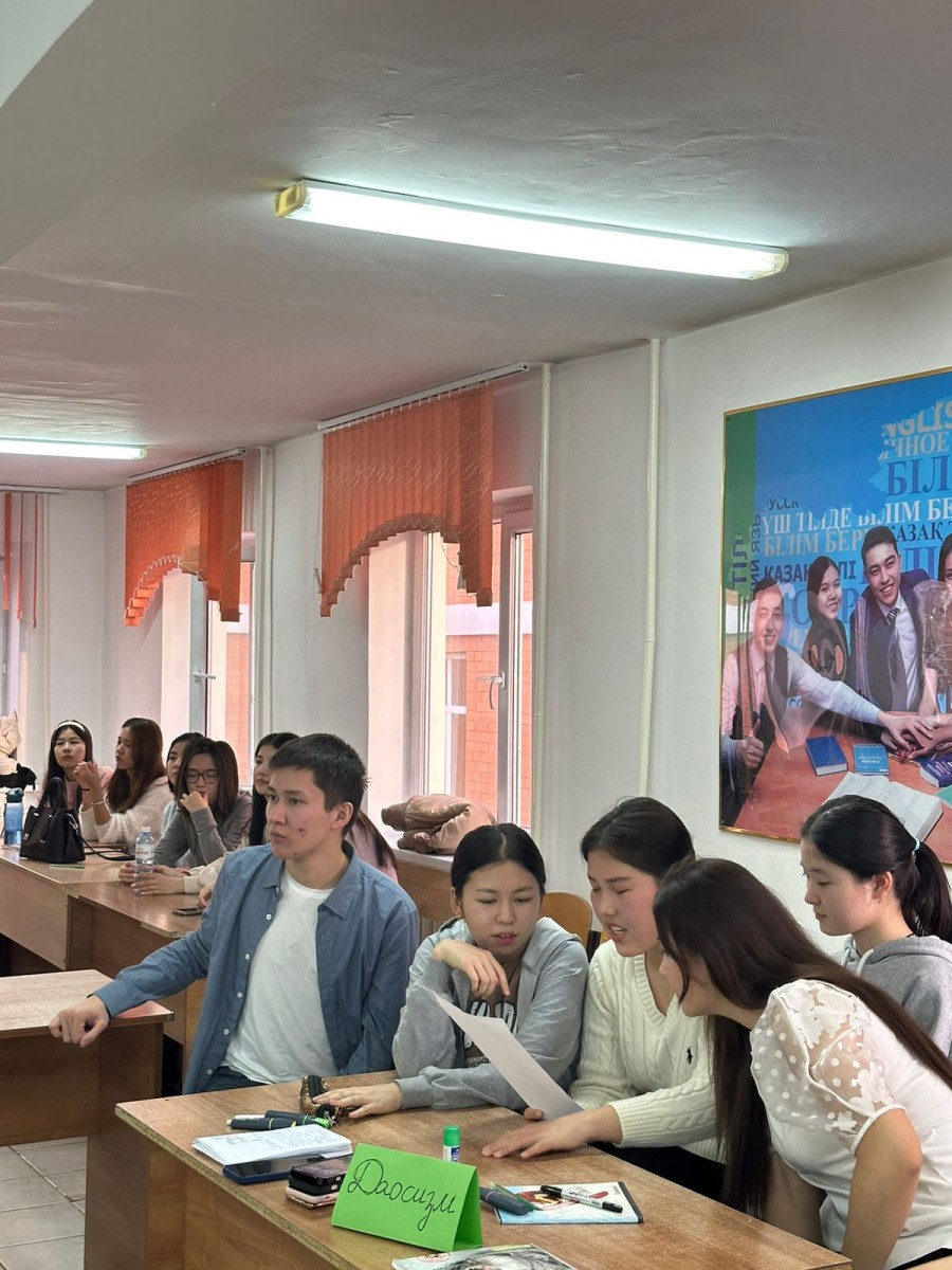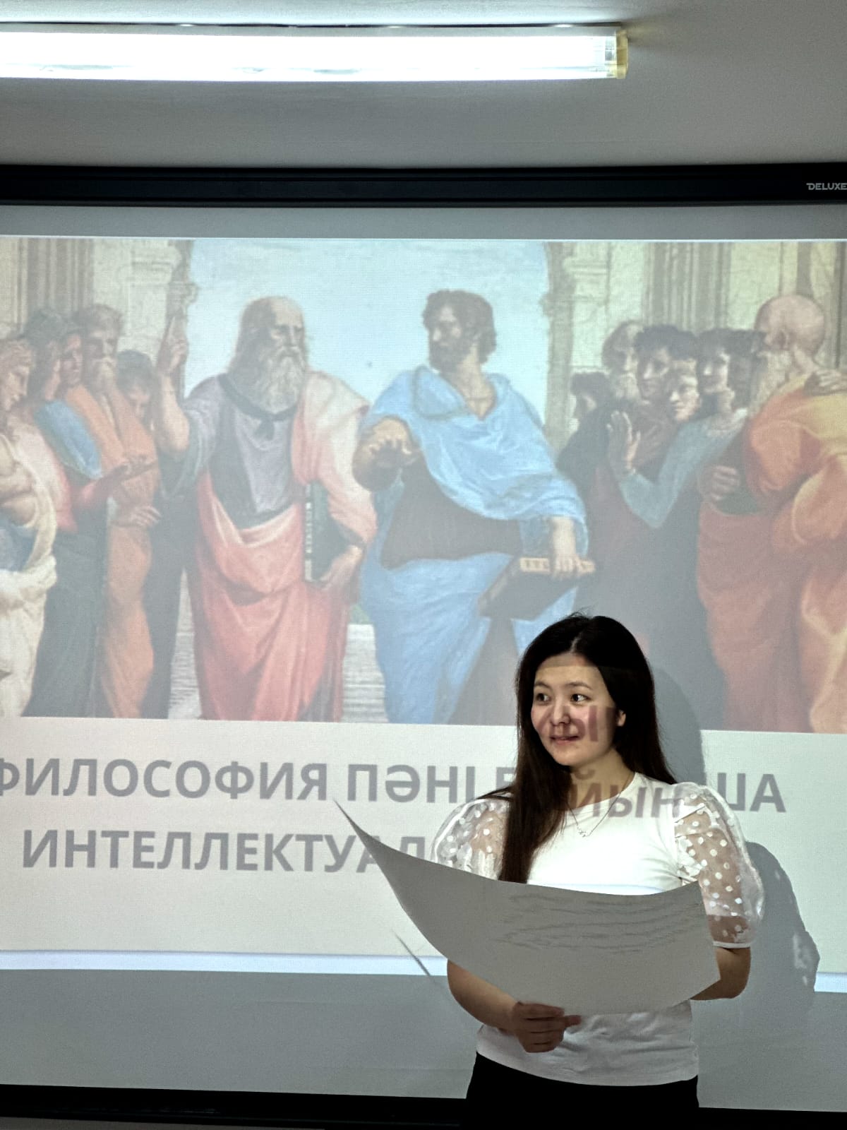 16 ноября 2023 года на кафедре педагогики Евразийского гуманитарного института им. А. К. Кусаинова отметили Всемирный день философии. В рамках праздничных мероприятий старший преподаватель кафедры Абылханова Б.К. провела открытое занятие по философии в формате интеллектуальной игры в академической группе ШТ-22-01 (2 курс, образовательная программа «Иностранный язык: два иностранных языка»).