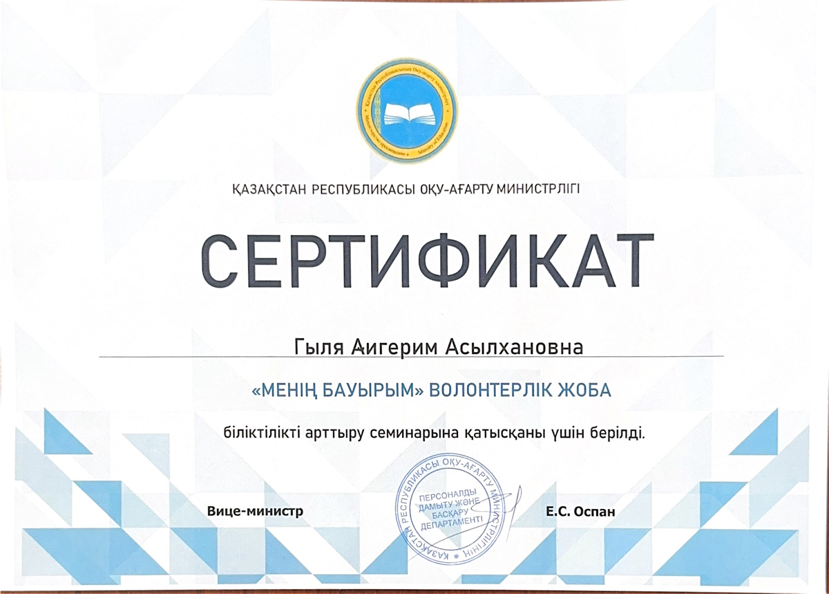 24 ноября 2023 года проректор по воспитательной работе Оспанова Я. Н., руководитель волонтерского Центра ЕАГИ Гыля А.А., председатель комитета по делам молодежи Шынберген Н. приняли участие в работе семинара по вопросу реализации волонтерского проекта «Менің бауырым». С приветственным словом выступила Председатель Комитета по охране прав детей Министерства просвещения Республики Казахстан Оспанова Н.Ж. Президент НАО «Национальный научно-практический институт благополучия детей «Өркен» Имангалиев Е.Н. представил презентацию о реализации волонтерского проекта «Менің бауырым». В ходе семинара состоялось обсуждение этапов реализации проекта и обмен опытом.