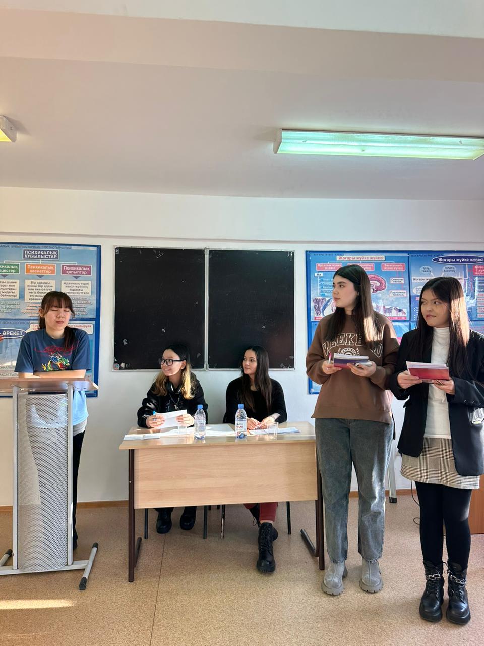 7 декабря 2023 года проректором по воспитательной работе, к.п.н., профессором Я.Н.Оспановой была проведена учебно – деловая игра «Выборы» среди студентов академических групп ИЯ-22-01, ПП-22-01.