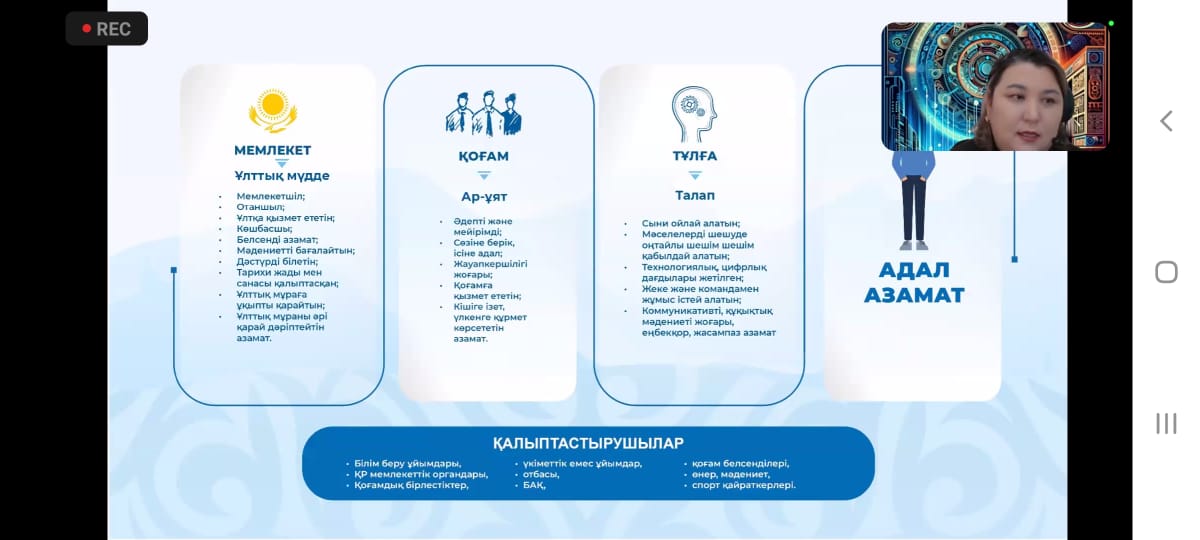25 января 2024 года преподаватели кафедры педагогики Тобагабылова И.А., Балтабаева А.Т., Жармаханова Г.Е., Болатбекова Н.Ж., Муликова А.С приняли участие в работе круглого стола в онлайн-формате, организованном Национальной академией образования имени Ы.Алтынсарина на тему: «Республикада педагогикалық білім беруді дамыту жолдары». В ходе заседания состоялось конструктивное обсуждение обширного круга педагогичепских проблем.