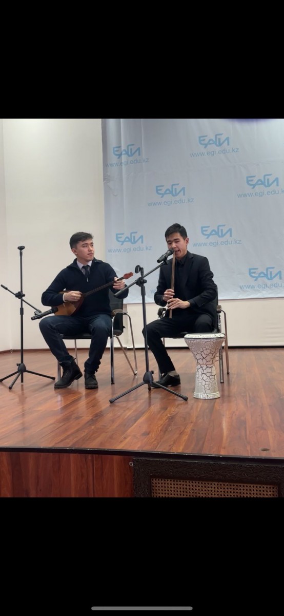 В ходе встречи присутствующие в зале были погружены в чарующие звуки народных музыкальных инструментов, а также исполнение казахских народных песен и горловое пение Темирлана Шукенова.