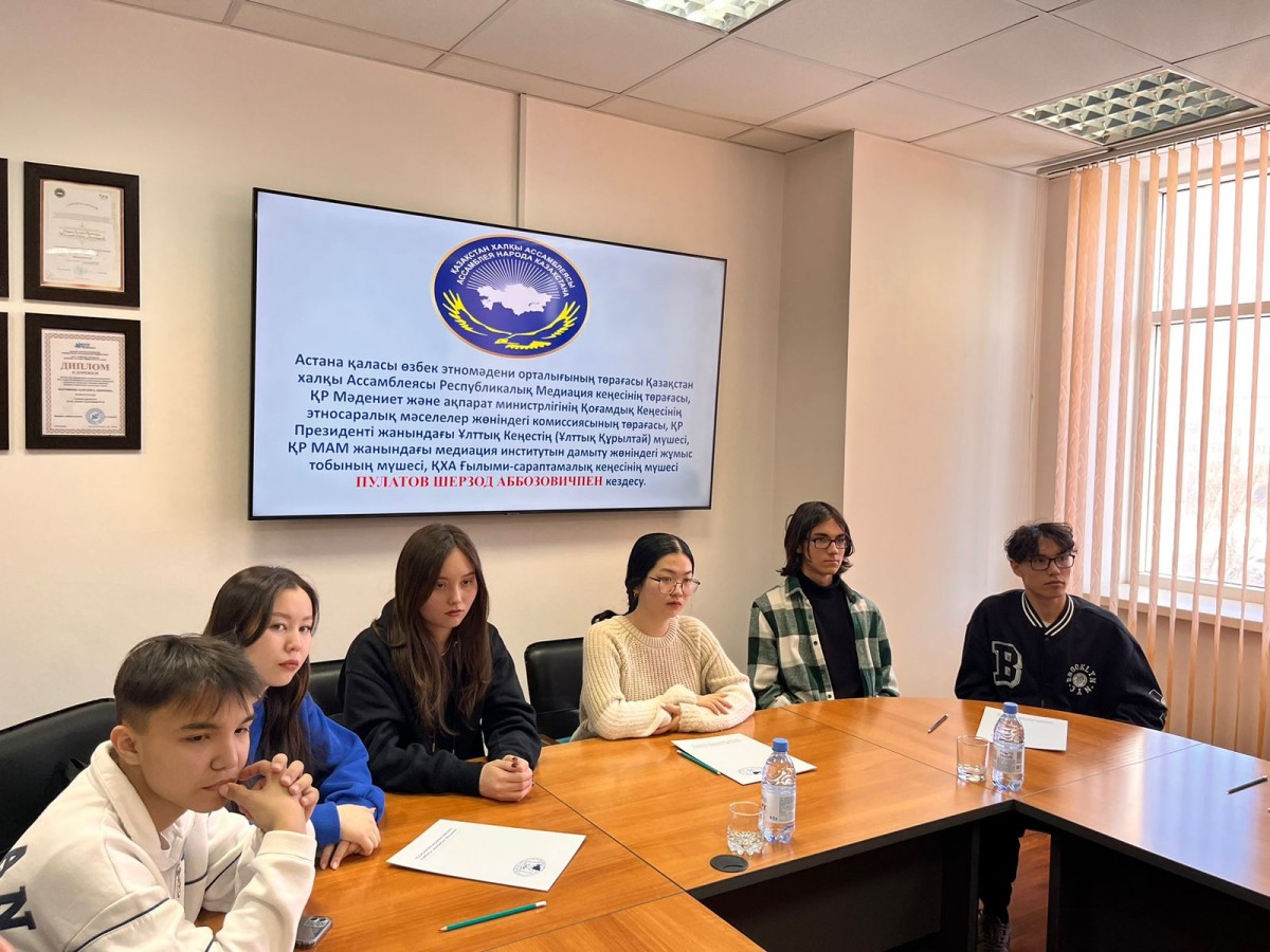 Встречу открыла проректор по воспитательной работе, к.п.н., профессор Оспанова Ярослава Николаевна, которая отметила, что Независимый Казахстан накопил особый положительный опыт межэтнического сотрудничества и взаимопонимания.