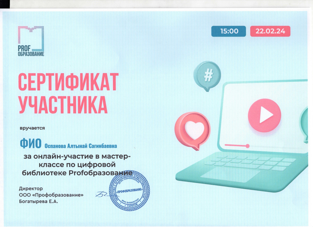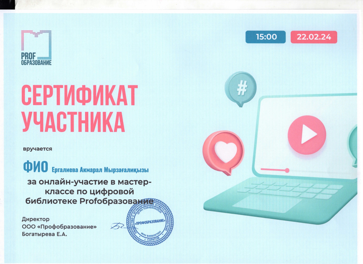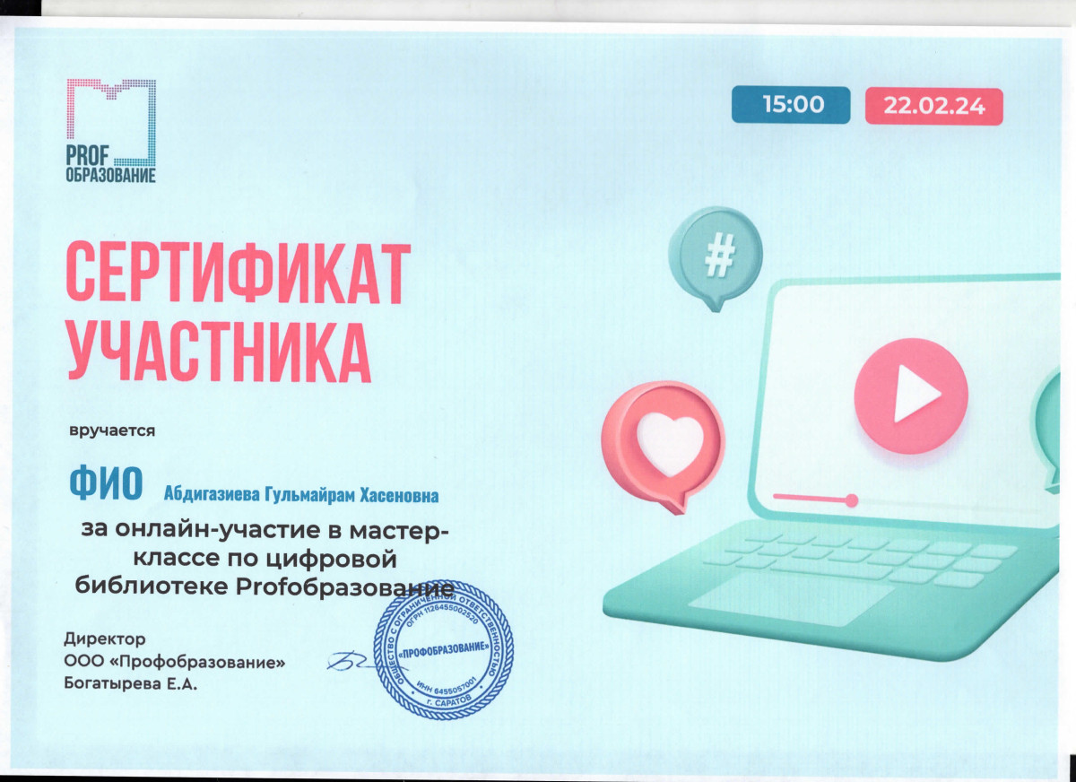 22 февраля 2024 года сотрудники библиотеки Евразийского гуманитарного института имени А.К.Кусаинова Абдигазиева Г.Х., Ергалиева А.М., Молдашева Н.К., Оспанова А.С. приняли участие в онлайн мастер-классе по цифровой библиотеке Profoбразование.