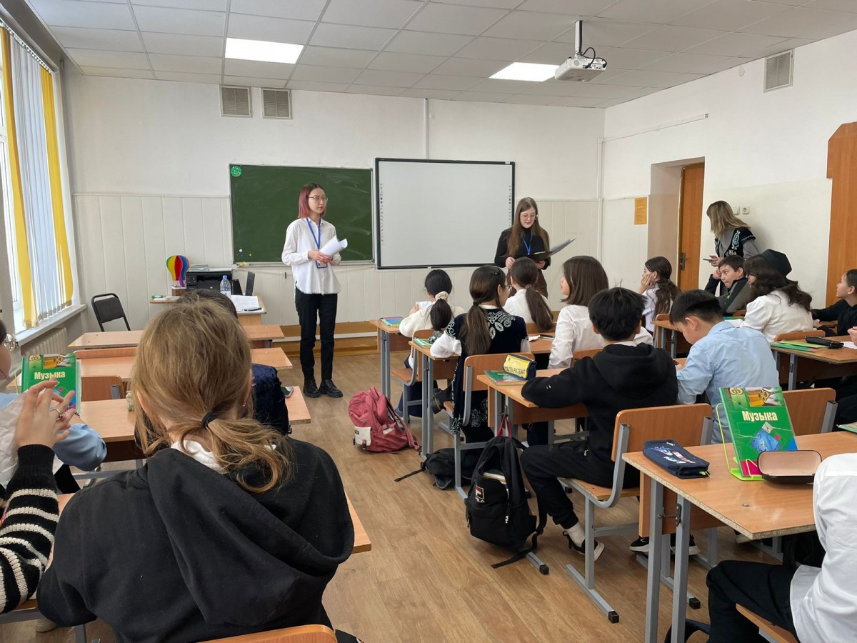 23 февраля 2024 года студенты-волонтеры кафедры педагогики (Домина К., Базар А., Бабанская А., Ерболатова Ж.) в рамках проекта «Менің бауырым» провели с учащимися 6 «Д», 6 «В» классов школы-гимназии № 5 г. Астана тренинг на тему: «Мы единое целое». Учащиеся, проявив интерес, приняли активное участие в тренинге.
