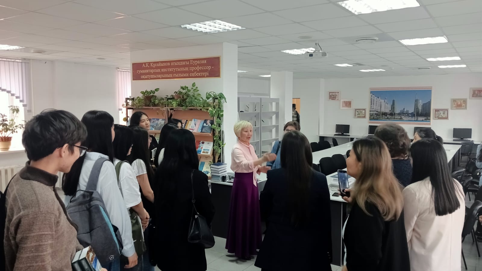 По предложению кафедры казахского языка и литературы в апреле текущего года библиотека ЕАГИ организовала и провела библиотечные уроки и мастер-классы для студентов с участием декана института Кемайкиной Т.Н. и преподавателей Казиной Р. и Жумагуловой Ш.М.