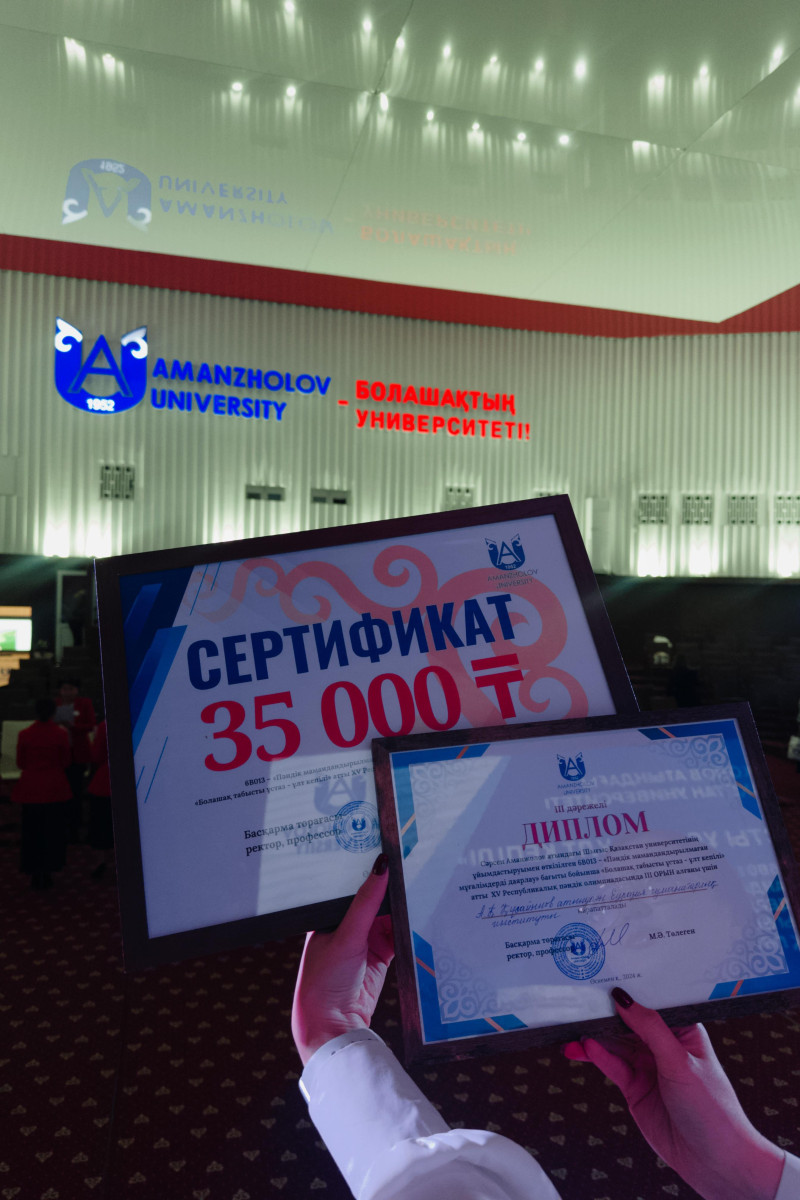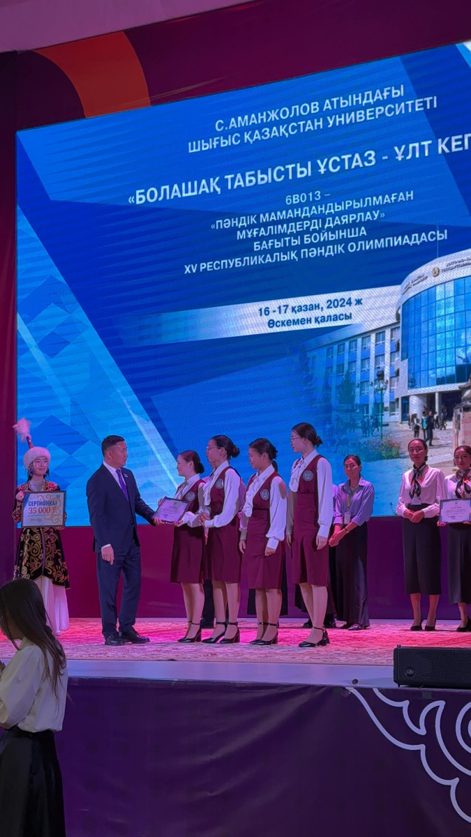 16 октября 2024 года в Восточно-Казахстанском университете имени С. Аманжолова (г.Усть-Каменогорск) прошла XV Республиканская предметная олимпиада «Будущий успешный учитель – залог нации» по направлению 6В013 – «Подготовка учителей неспециализированного профиля». Под руководством старшего преподавателя кафедры педагогики и истории ЕАГИ Балтабаевой А. Т. команда студентов образовательной программы 6В01303 – «Педагогика и методика начального обучения» заняла 3 место. Студенты были награждены дипломами и денежной премией. Поздравляем с победой !