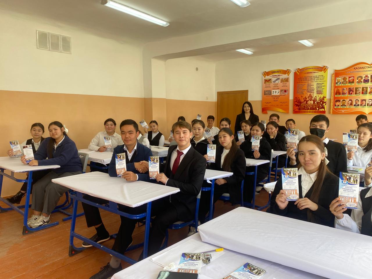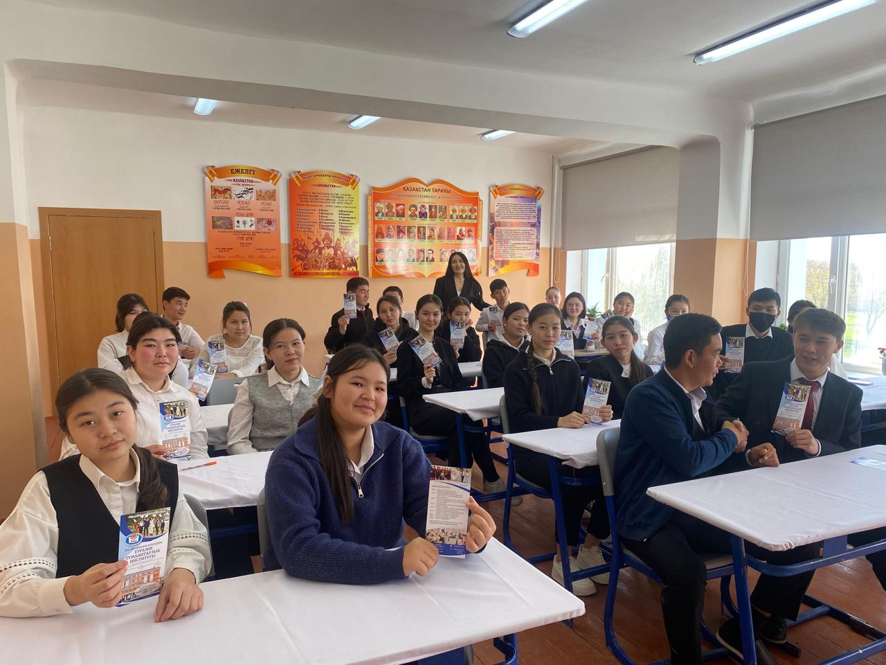 7 ноября 2024 года старший преподаватель кафедры педагогики и истории Б.Е. Сейіткерім встретилась с учениками 11 класса общеобразовательной школы №9 им. Ш. Уалиханова района Байдибек Туркестанской области. В ходе встречи учащимся была предоставлена информация об истории Евразийского гуманитарного института им. А. К. Кусаинова и имеющихся образовательных программах.