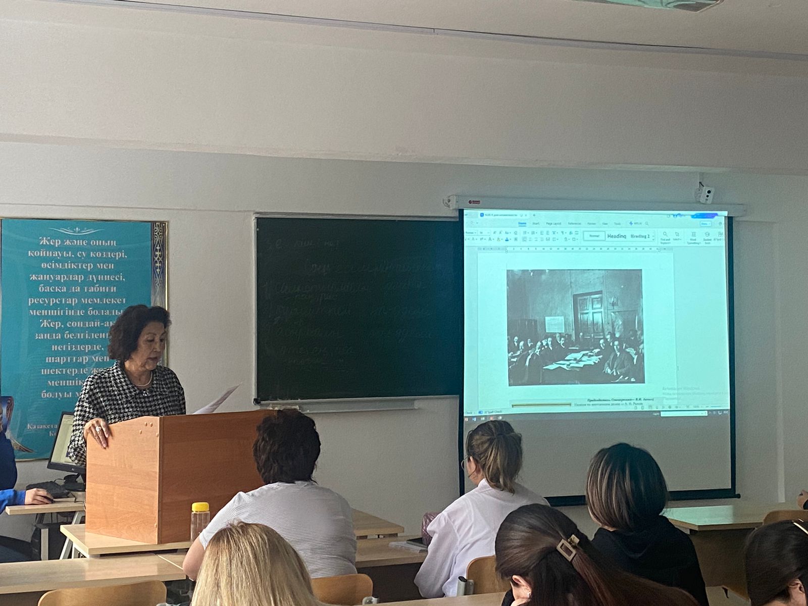 2 декабря 2024 года в преддверии празднования Дня независимости Республики Казахстан и в рамках Недели «Независимость и идеи «Алаш», организованной кафедрой педагогики и истории, к.и.н., профессор кафедры Джанпеисова М.М. для студентов 1 курса образовательных программ «Юриспруденция», «Начальное образование», «История», «Педагогика и психология» прочитала открытую лекцию на тему: «Роль национальной интеллигенции в становлении государственности Казахстана».