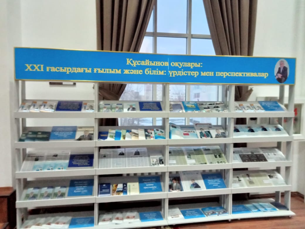 На ней представлены труды А.К.Кусаинова, научные издания, монографии ведущих учёных вуза, научные журналы «Вестник Евразийского гуманитарного института», материалы студенческих конференций с публикациями молодых исследователей. Также вниманию гостей представлена деятельность института в периодической печати.
