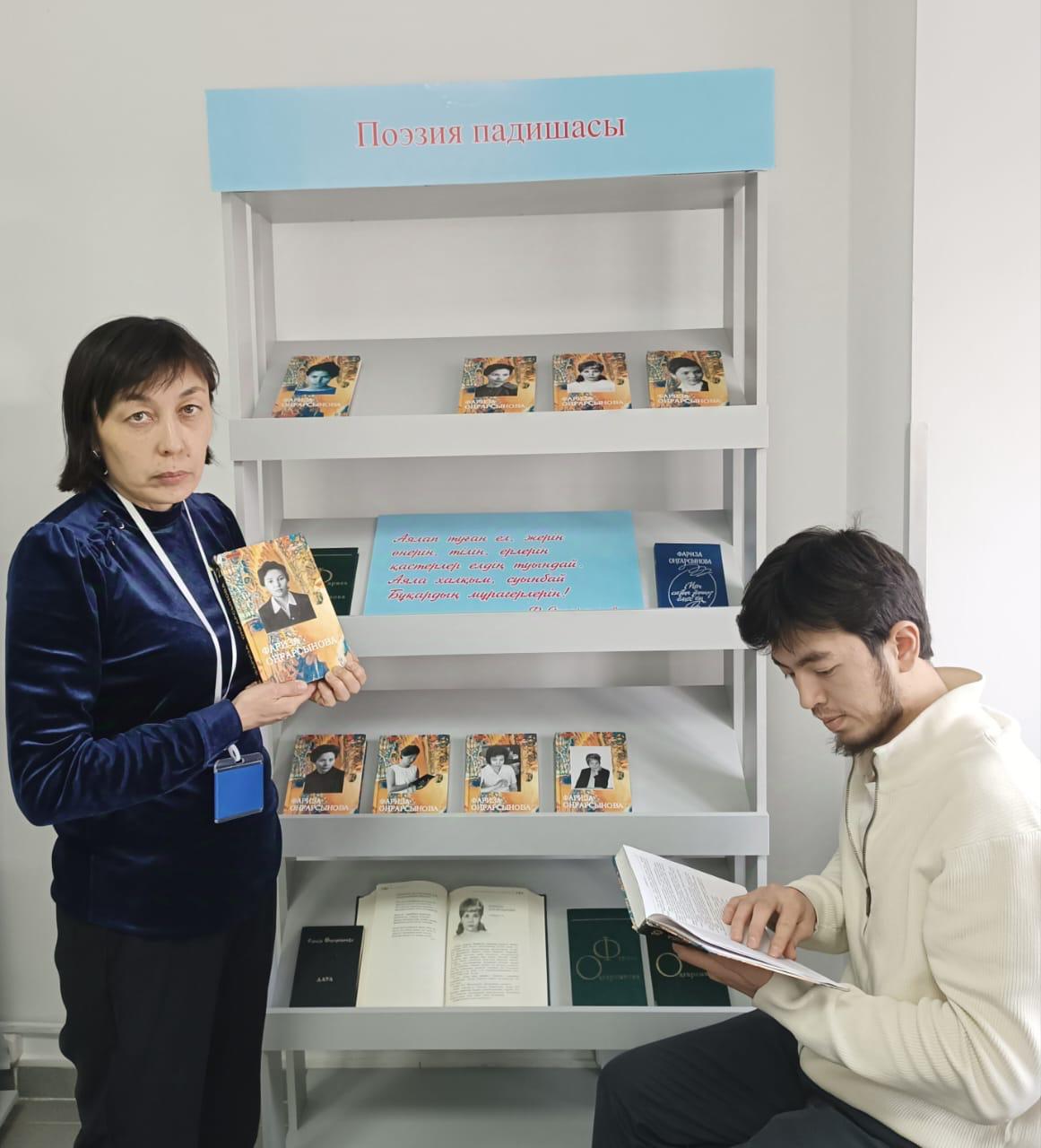 Также, в стенах читального зала библиотеки была организована книжная выставка «Поэзия падишасы». Библиотекарь Оспанова А.С. провела библиографический обзор для любителей поэтической мысли.