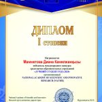 По итогам конкурса Мамметова Диана Камилжанқызы была награждена дипломом 1 степени, а также ее научная статья вошла в XII Международный научный журнал «Наука и образование: Новое время».