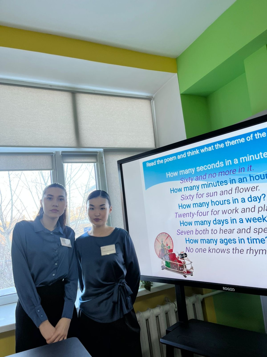 Студенты 2 курса образовательной программы «Иностранный язык: два иностранных языка» (академическая группа ИЯ-23-01) проходят учебно-воспитательную практику в школах г.Астана под руководством старших преподавателей Сарсеновой А.М., Султановой А.А.. В ходе практики студенты применяют теоретические знания, полученные на занятиях, учатся творчески подбирать наглядно-дидактический материал в соответствии с планом-конспектом урока, а также анализируют занятия учителей, разрабатывают сценарии и проводят внеклассные мероприятия на английском языке.