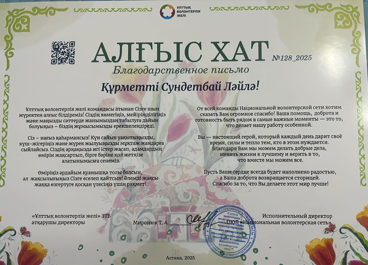 Среди награжденных — Абдықалық Айжан, Сундетбай Ләйлә, Хван Миён, Медетқызы Наргиз, Әпен Нурсултан, Қалышбекова Ұлпан, Базарбай Қарақат, Ерлан Әлішер, Кененбаева Жанерке и Ергалиева Ая. Эти студенты проявили себя в различных волонтерских проектах, участвуя в благотворительных акциях социальной направленности.