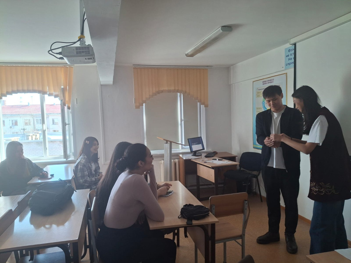 19 марта 2025 г. руководитель психологической службы Евразийского гуманитарного института им. А.К.Кусаинова Мусиев А.Б. провел тренинг «Движение в одном направлении » для студентов академической группы ҚЭТ-24-01 (1 курс, образовательная программа «Финансы»). Цель тренинга: укрепить командный дух и развить навыки эффективного взаимодействия, направленные на достижение общих целей через совместное участие, доверие и взаимопонимание.