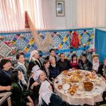 Библиотекари приняли также участие и в праздничном мероприятии института. Переодевшись в национальные костюмы, вместе с коллегами провели обряд «Бесікке салу».