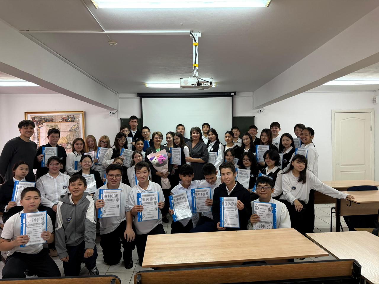 В ходе визита ребята встретились с проректором по науке и международному сотрудничеству С.А. Ескалиевым и старшим преподавателем кафедры педагогики и истории Г.Е. Жармахановой , получили портфолио из рук декана Т.Н. Кемайкиной и во время экскурсии получили представление о направлениях деятельности института.