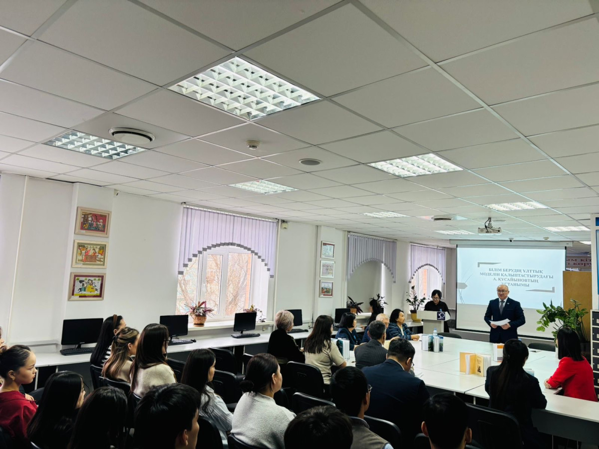 20 ноября состоялся семинар на тему: «Білім берудің ұлттық моделін қалыптастырудағы А. Құсайыновтың ұстанымы», организованный научно-исследовательским центром имени А.К. Кусаинова, модератором которого выступил проректор по науке и международному сотрудничеству С.А. Ескалиев. Профессор кафедры педагогики и истории К.А. Ахметов, проректор по академической работе и стратегическому развитию Загатова С.Б. поделились воспоминаниями, связанными с историей института. Руководитель научно-исследовательского центра имени А.К. Кусаинова Л.Н. Дауренбекова проанализировала направления развития системы образования в Казахстане, научно-теоретические основы национальной модели и педагогические подходы А.Кусаинова.