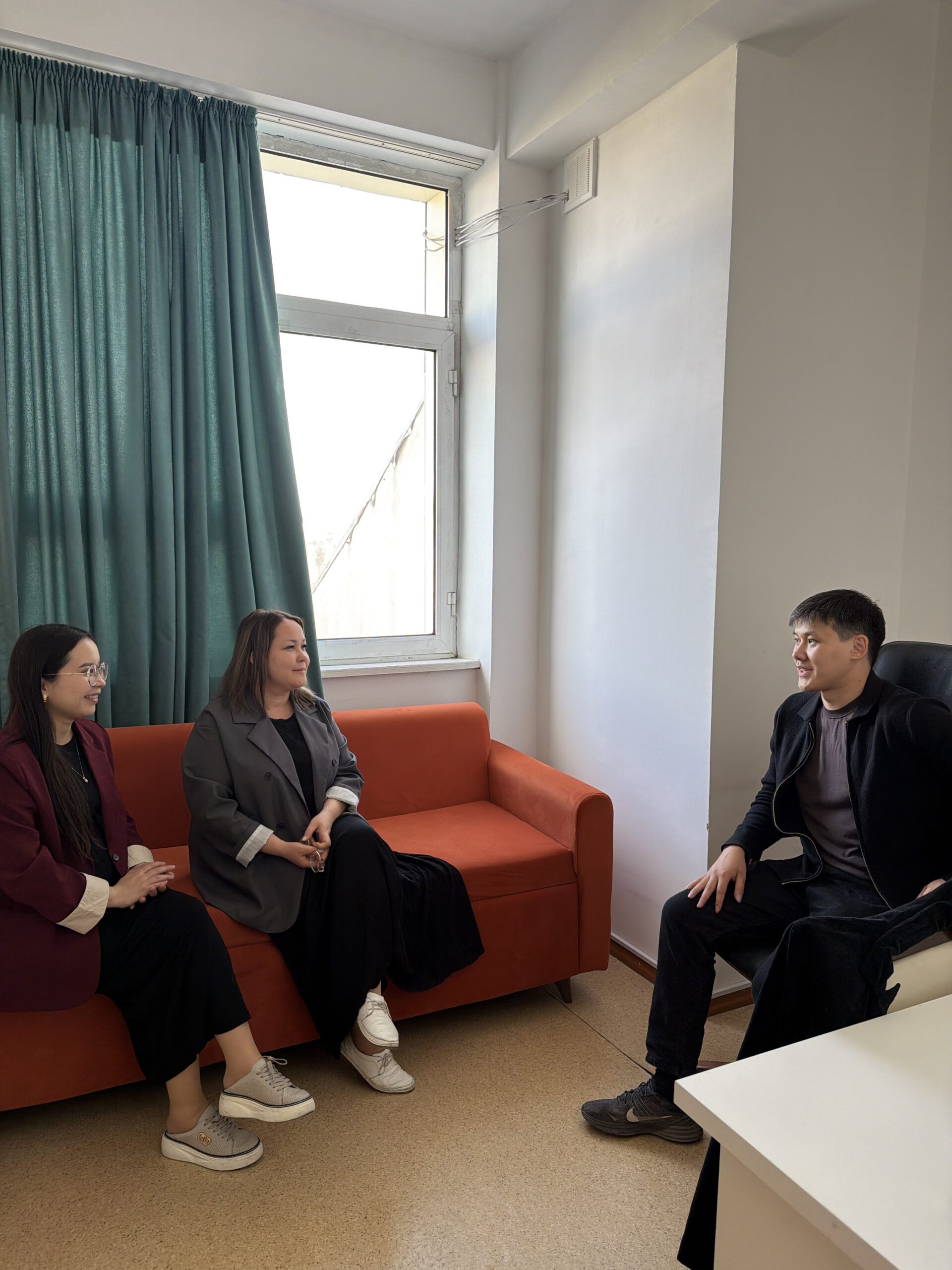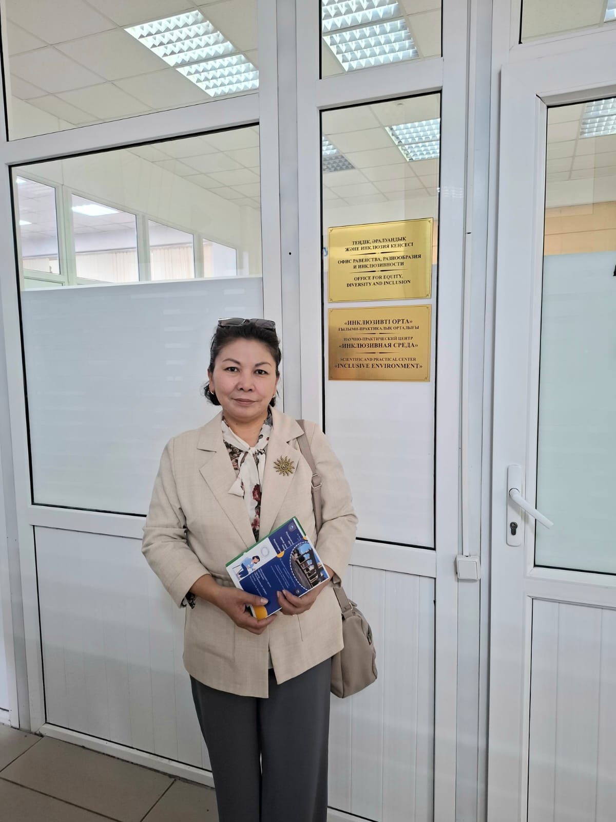 В ходе визита была проведена рабочая встреча с Абдукаримовой Эльмирой Усенкызы — начальником отдела организации социально-культурной работы и психологической поддержки. В рамках встречи состоялся обмен профессиональным опытом по вопросам организации психологической поддержки студентов и формирования инклюзивной образовательной среды.