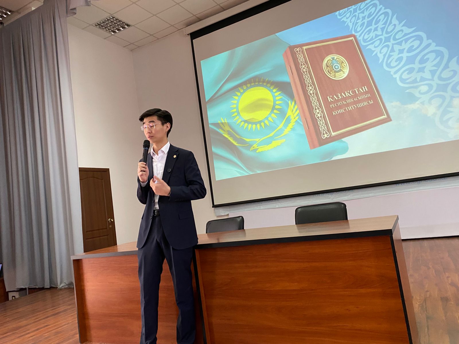 В ходе встречи студентам были разъяснены ключевые ценности новой Народной Конституции: верховенство закона, справедливость, равенство возможностей и ответственность каждого гражданина за будущее страны.