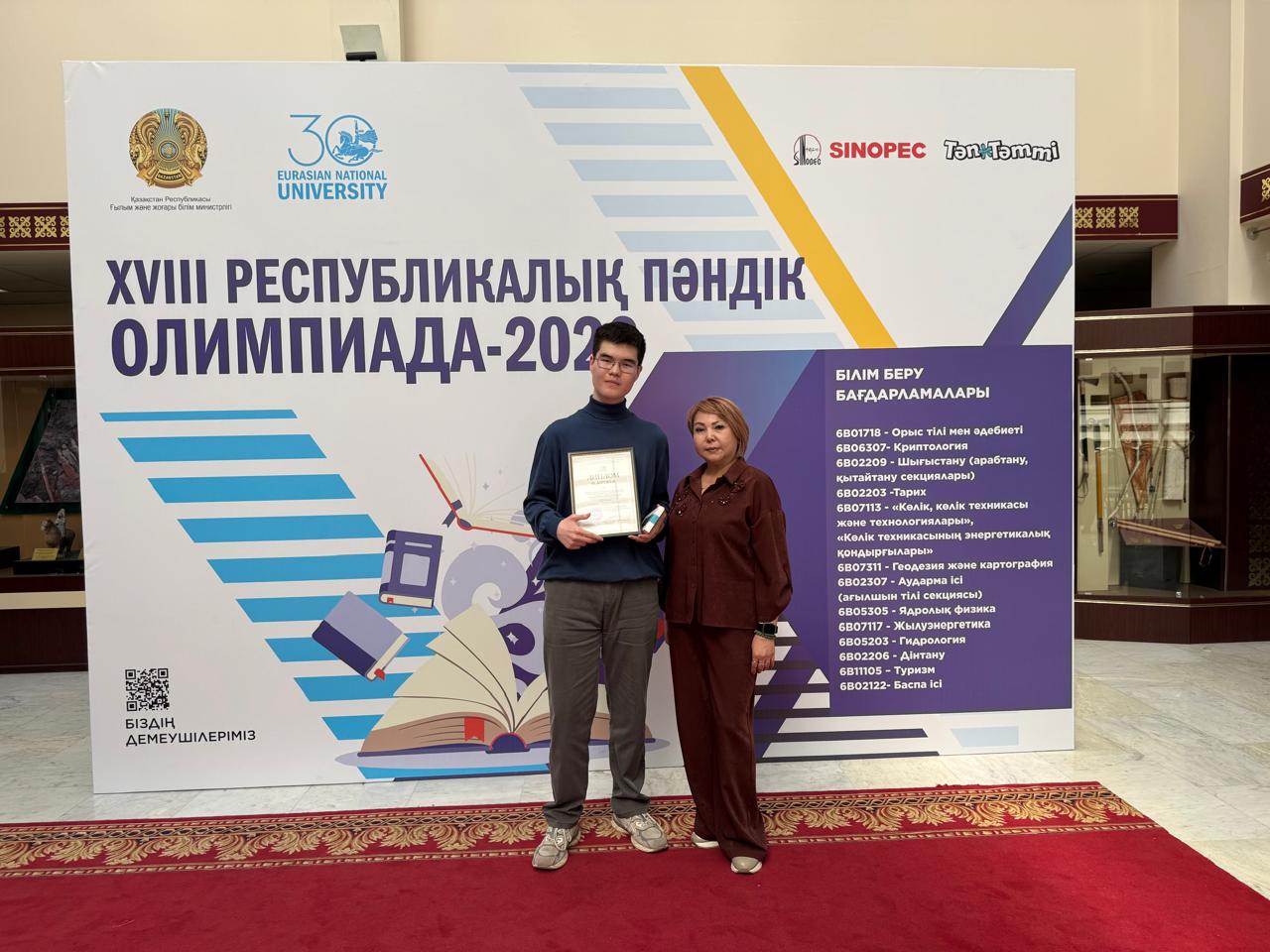 По итогам олимпиады студент образовательной программы «Переводческое дело» ЕАГИ Алмабеков Шафхат занял III место (научный руководитель — Давлетова Салтанат Есенгалиевна).