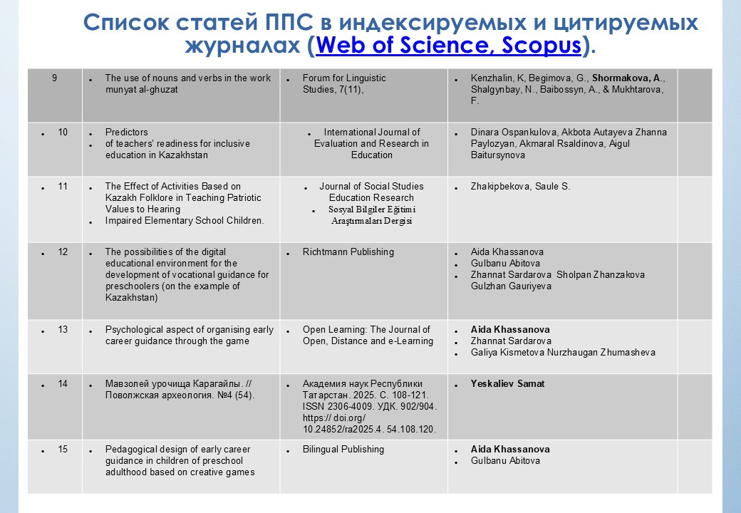 - «Научно-методическое обеспечение и педагогические технологии в профессиональной подготовке учителей» (руководитель темы: доктор педагогических наук, профессор Сарсекеев Б.С.);